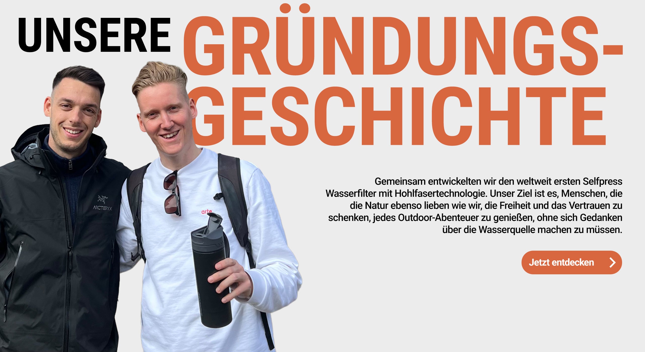 Wir sind Jerome & Laurenz und haben Bachgold aus einer einzigen Mission heraus gegründet. Als begeisterte Outdoor Sportler aus der Schweiz möchten wir euch eine außergewöhnliche Freiheit für grenzenlose Abenteuer in der Natur ermöglichen, ohne sich Sorgen um die nächste Wasserquelle machen zu müssen.